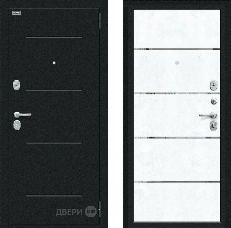 Входная металлическая Дверь Bravo Лайн Букле черное/Snow Art 860х2050 мм