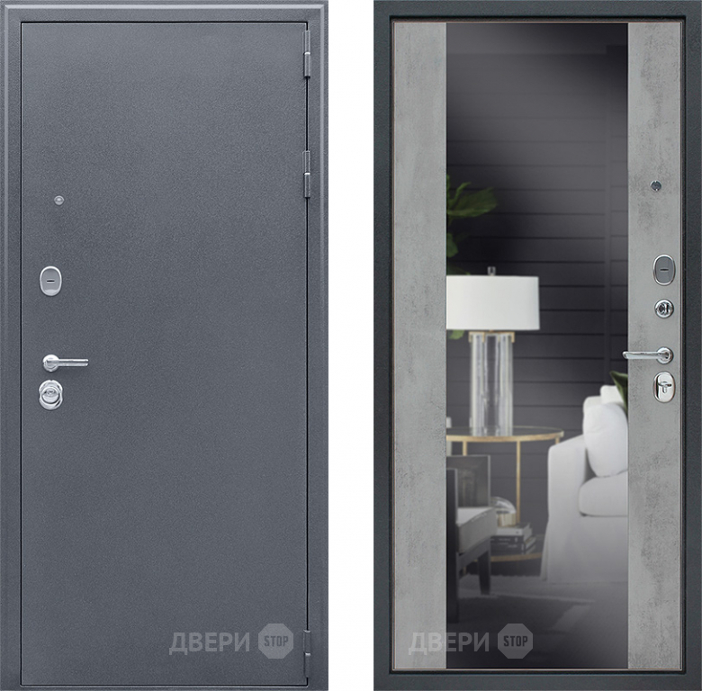 Входная металлическая Дверь АСД Спартак-Б с зеркалом Бетон светлый 860х2050 мм
