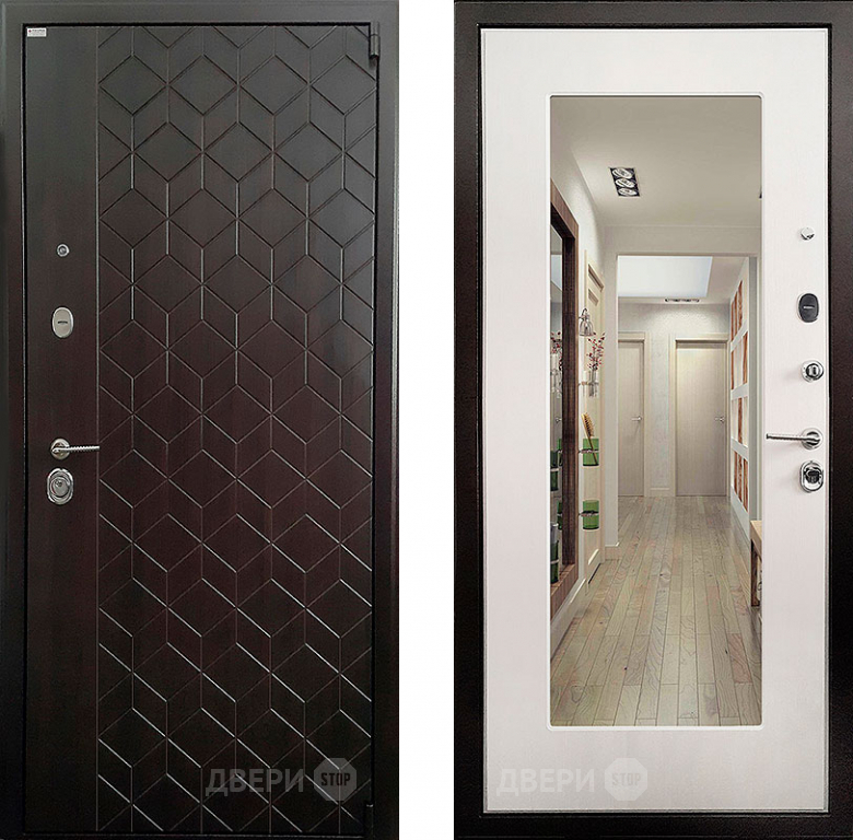 Входная металлическая Дверь Ратибор Квант зеркало 3К Лиственница 860х2050 мм