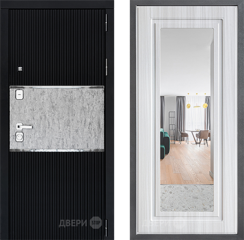 Входная Дверь Дверной континент ДК-13 ФЛЗ Зеркало Сандал белый 860x2050 мм
