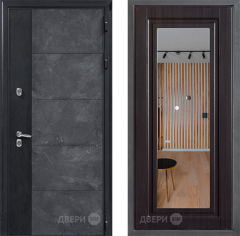Входная Дверь Дверной континент ДК-15 Бетон ТЕРМО ФЛЗ Зеркало Венге 860x2050 мм