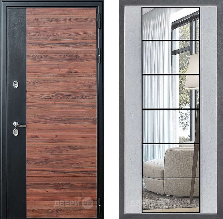 Входная Дверь Дверной континент ДК-15 Красное Дерево ТЕРМО ФЛЗ-2 Зеркало Бетон светлый 860x2050 мм