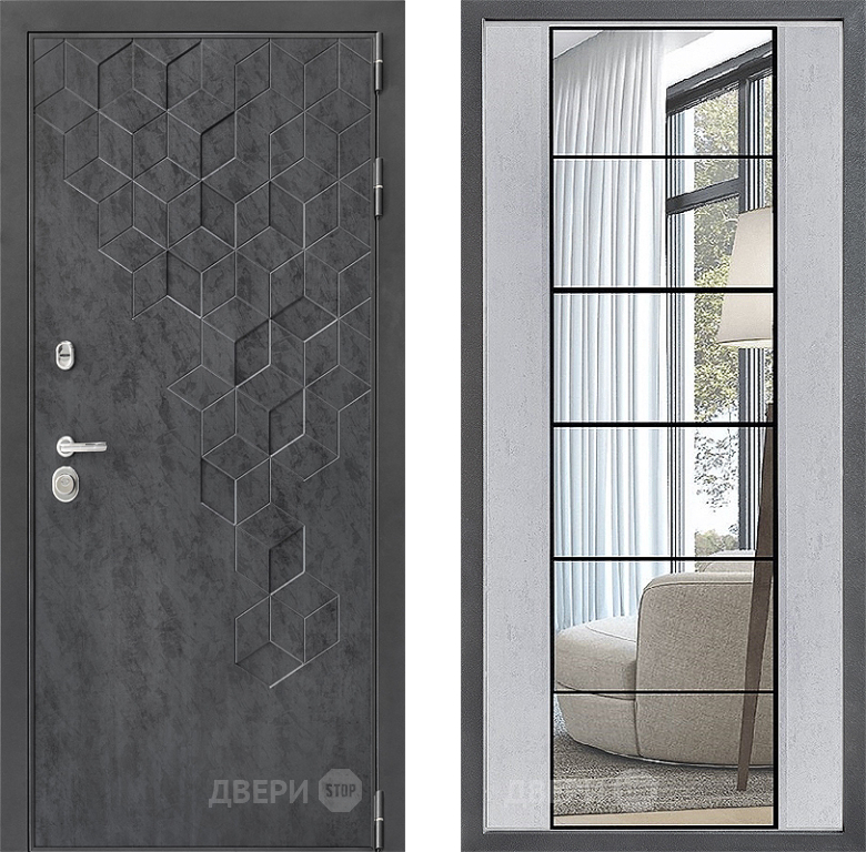 Входная Дверь Дверной континент ДК-3/713 ФЛЗ-2 Зеркало Бетон светлый 960x2050 мм