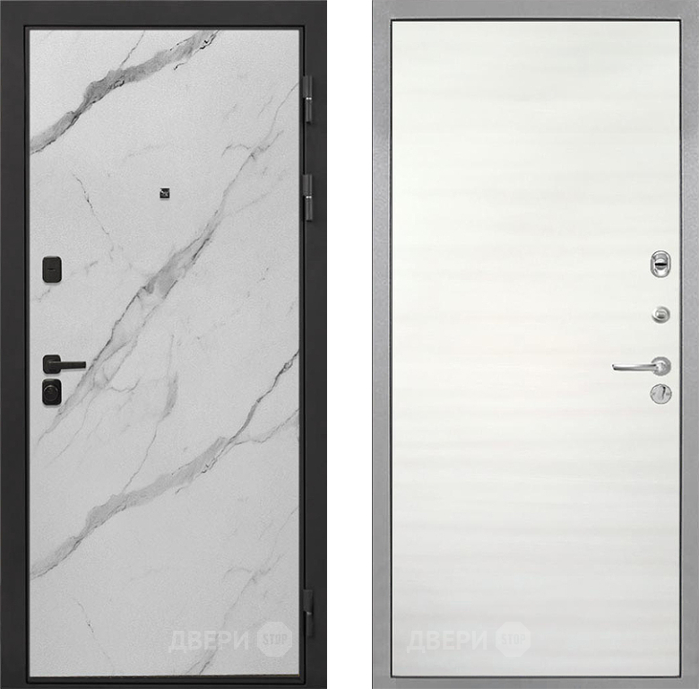 Входная Дверь Интекрон (INTECRON) Профит Black Мрамор Арктик Гладкая Дуб сильвер поперечный 860x2050 мм