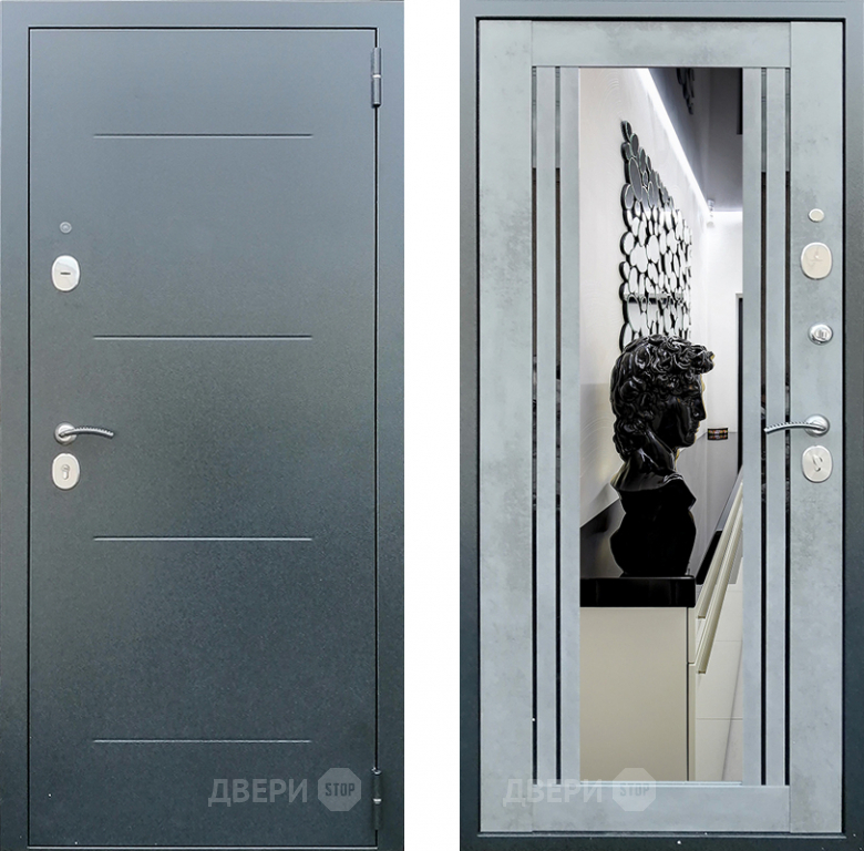 Входная металлическая Дверь Престиж Люкс с зеркалом Бетон 860х2050 мм