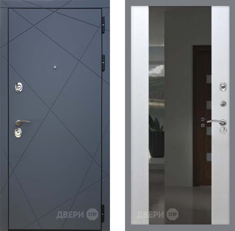 Входная Дверь Рекс (REX) 13 Силк Титан СБ-16 Зеркало Белый ясень 860x2050 мм