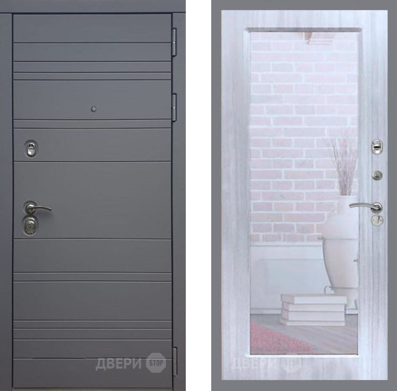 Входная Дверь Рекс (REX) 14 силк титан Зеркало Пастораль Сандал белый 960x2050 мм