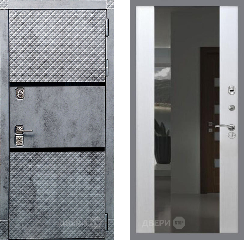 Входная Дверь Рекс (REX) 15 Бетон Темный СБ-16 Зеркало Белый ясень 860x2050 мм