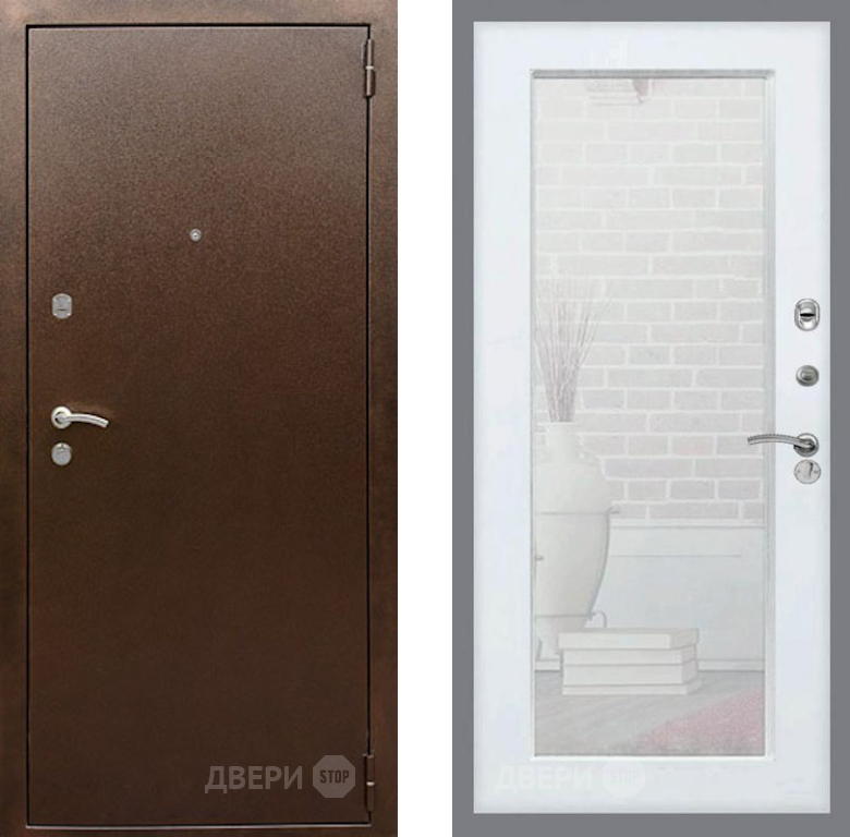 Входная Дверь Рекс (REX) 1А Медный Антик Зеркало Пастораль Белый ясень 960x2050 мм