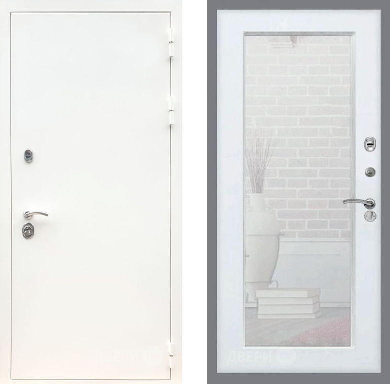 Входная Дверь Рекс (REX) 5 Белая Шагрень Зеркало Пастораль Белый ясень 960x2050 мм