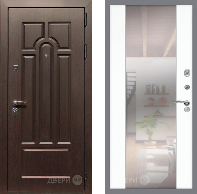 Входная Дверь Рекс (REX) Эврика СБ-16 Зеркало Силк Сноу 860x2050 мм