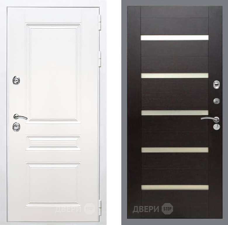 Входная Дверь Рекс (REX) Премиум-н Силк Сноу СБ-14 стекло белое венге поперечный 960x2050 мм