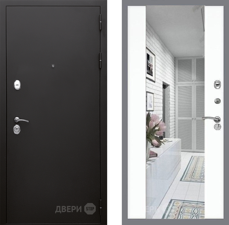 Входная Дверь Стоп КЛАССИК Шагрень Зеркало СБ-16 Силк Сноу 860x2050 мм
